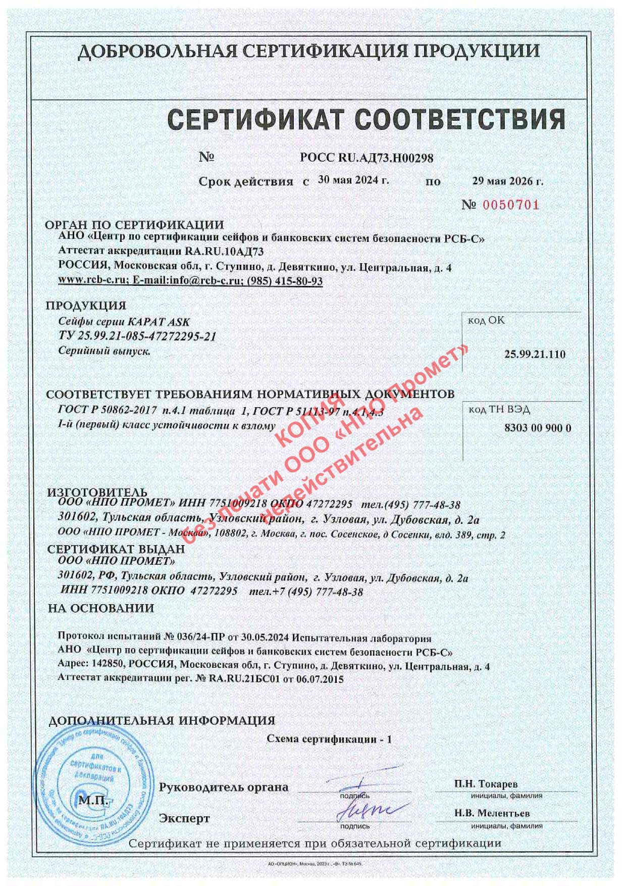 Сейф взломостойкий 1 класса. Предназначен для сохранности документов и ценностей при взломе. 3-х сторонняя ригельная система запирания, защита ригелей от высверливания и выбивания, защита замка от высверливания. Наличие анкерного крепления к полу. Замок ключевой. Внутри сейфа полка. Размер Ш*Г*В (мм) 440*380*300