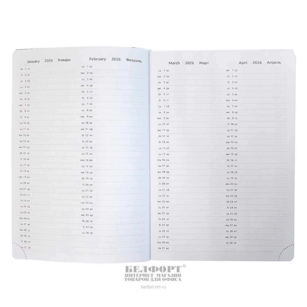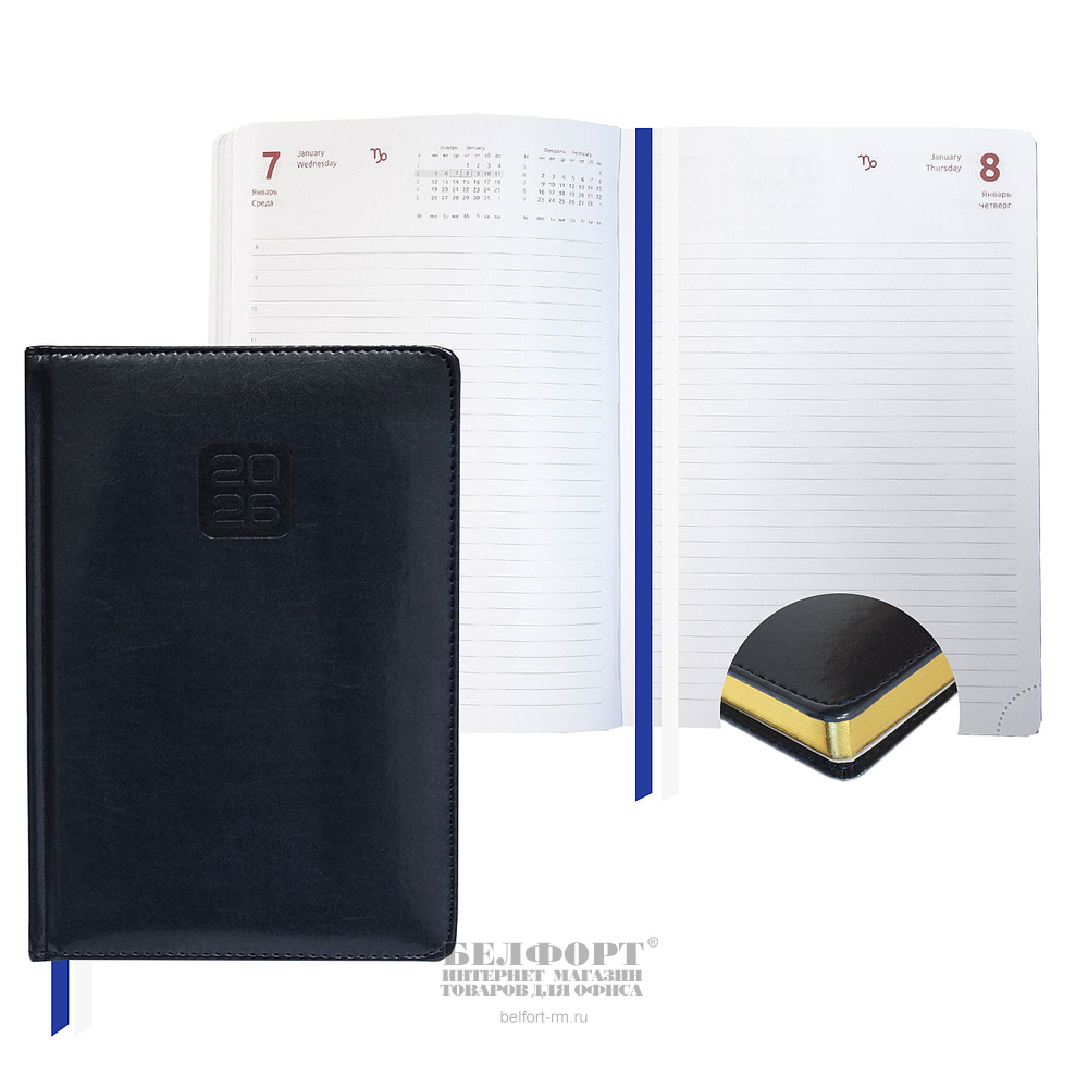 Ежедневник 2026г. А5, кожзам, deVENTE, "Bravo", 168л, 205мм*145мм, в твердом переплете, синий, белый блок, ляссе, золотистый срез, с поролоном