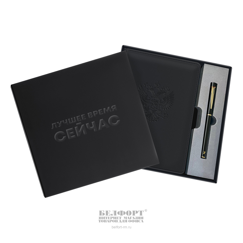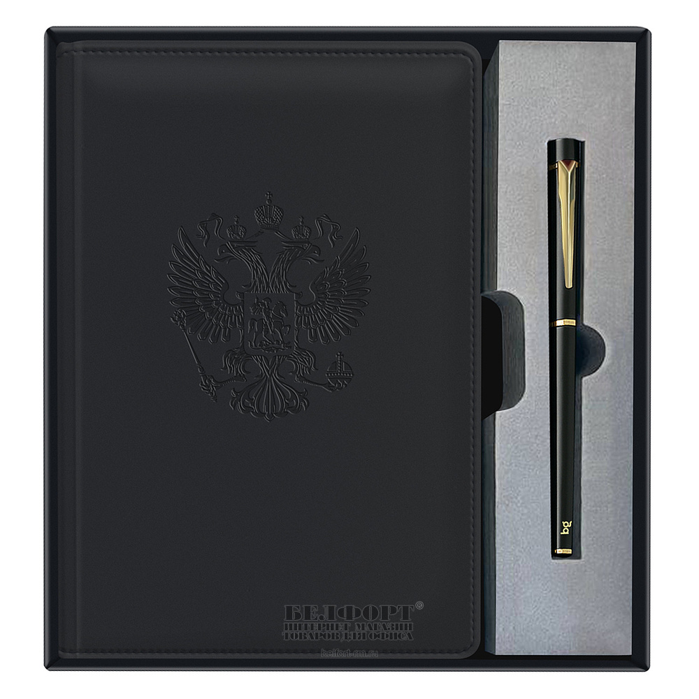 Подарочный набор BG, "Орел", ежедневник недат.+ручка, 245мм*175мм, кожзам, А5, черный