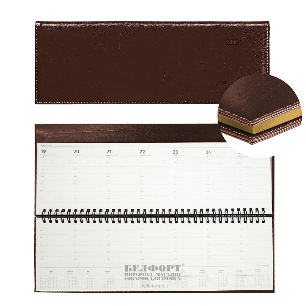 Планинг 2026г. кожзам, Berlingo, "xGold", 64л, 330мм*140мм, на спирали(гребне), коричневый, кремовый блок, золотистый срез, 80г⁄м²