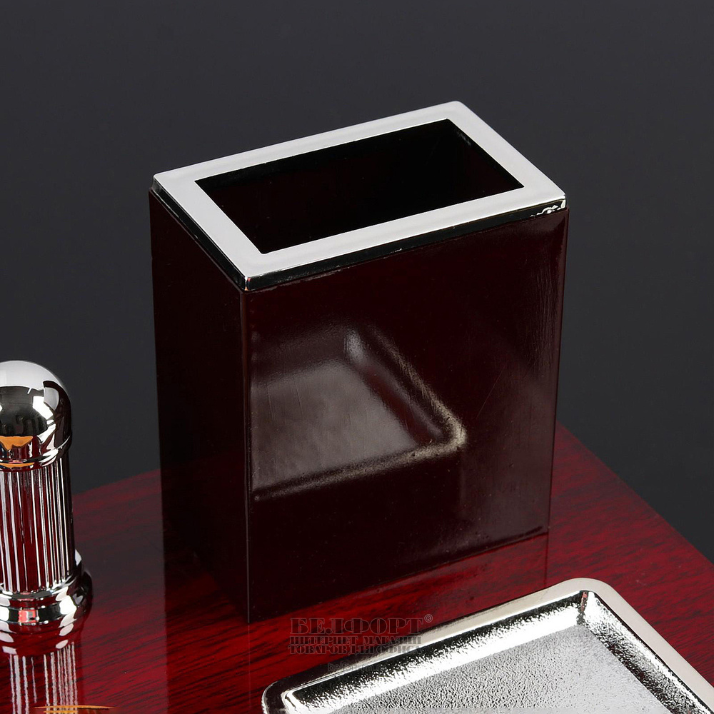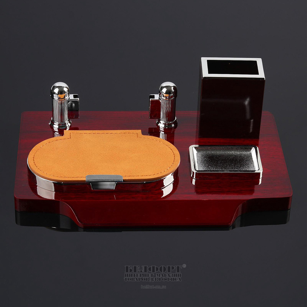 Набор настольный "Органайзер 4 в 1", дерево, пластик, 4 предмета, с визитницей, красное дерево