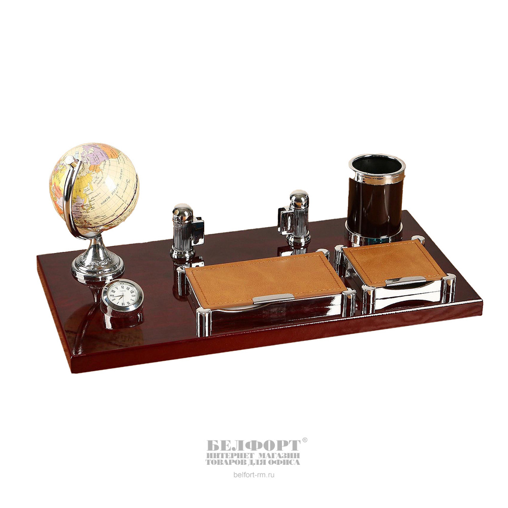Набор настольный Calligrata, "Органайзер 6 в 1", дерево, пластик, 6 предметов, с визитницей и часами, красное дерево