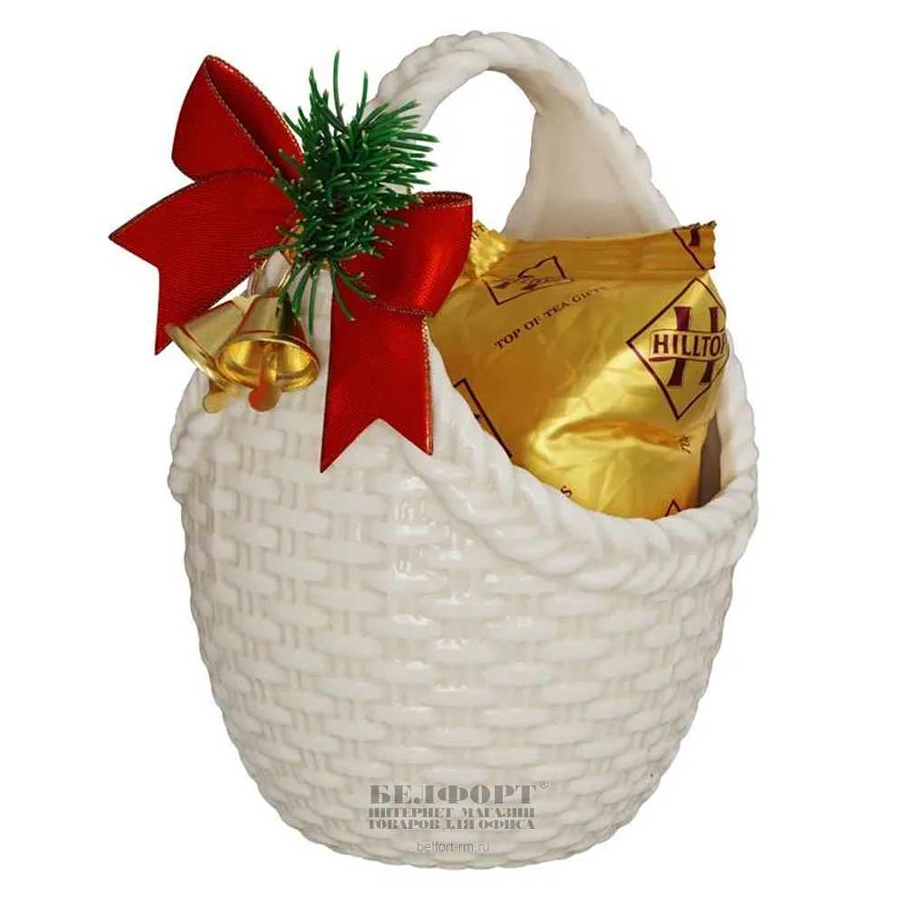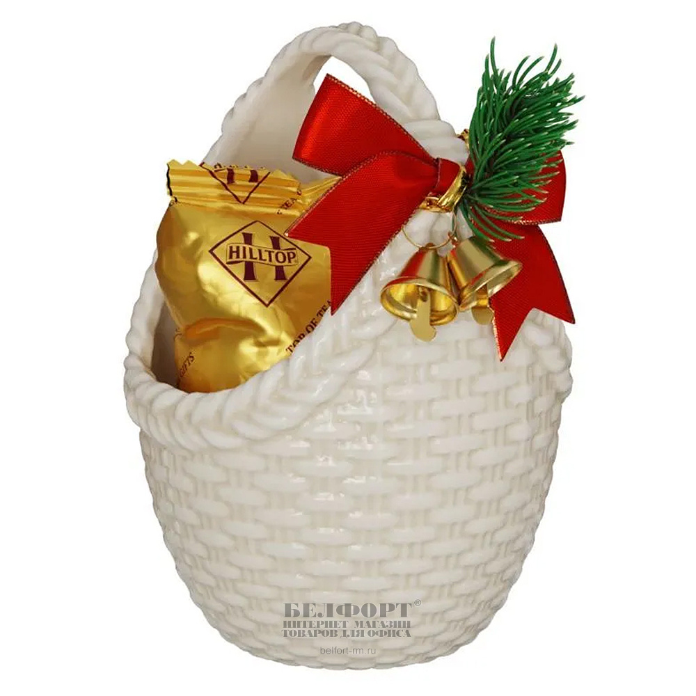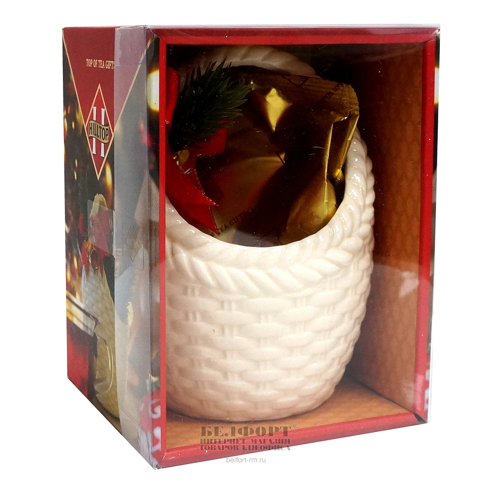 Подарочный набор Hilltop, "Новогодний бант", черный, крупнолистовой, 30г, +керамическая корзинка