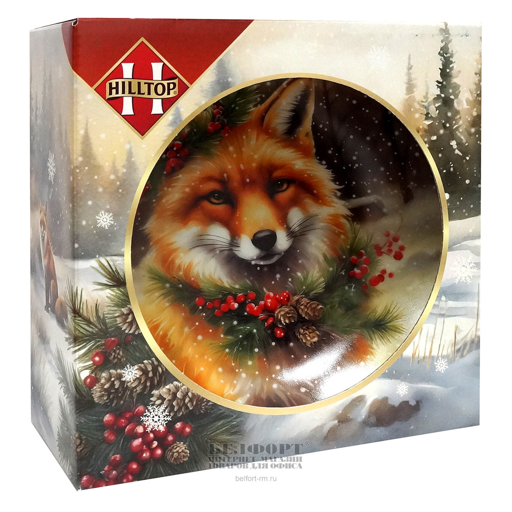 Подарочный набор Hilltop, "Снежная лиса", черный, крупнолистовой, 50г, +тарелка