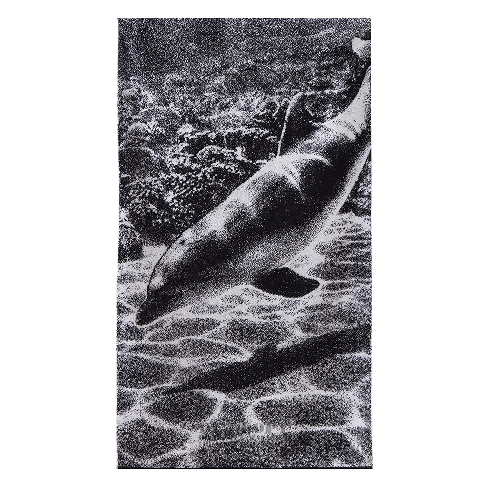 Полотенце для пляжа, махровое, для бассейна, спортзала, бани, пляжа и активного отдыха, Этель, "Дельфин", черное, белое, 130см*70см, хлопок, 420г⁄м²
