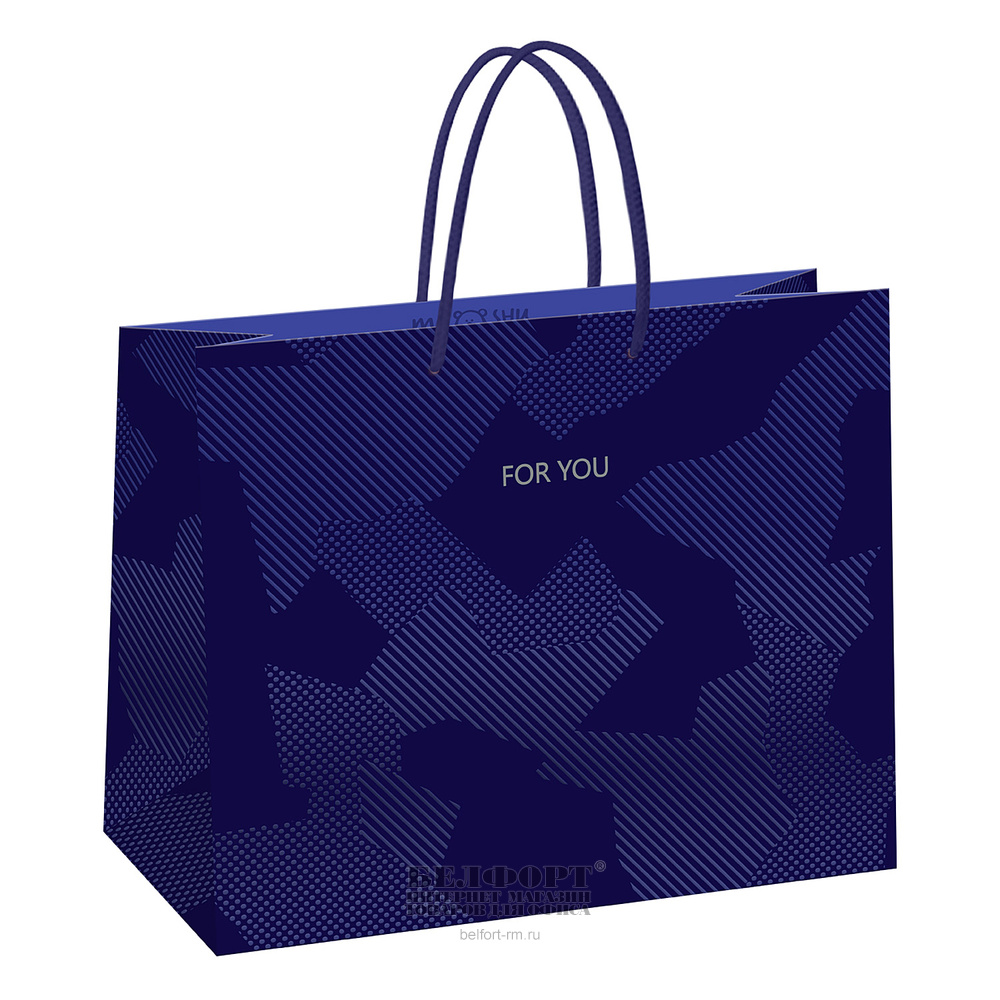 Пакет подарочный бумага, 32см*12см*26см, "Blue pattern", горизонтальный, матовая ламинация
