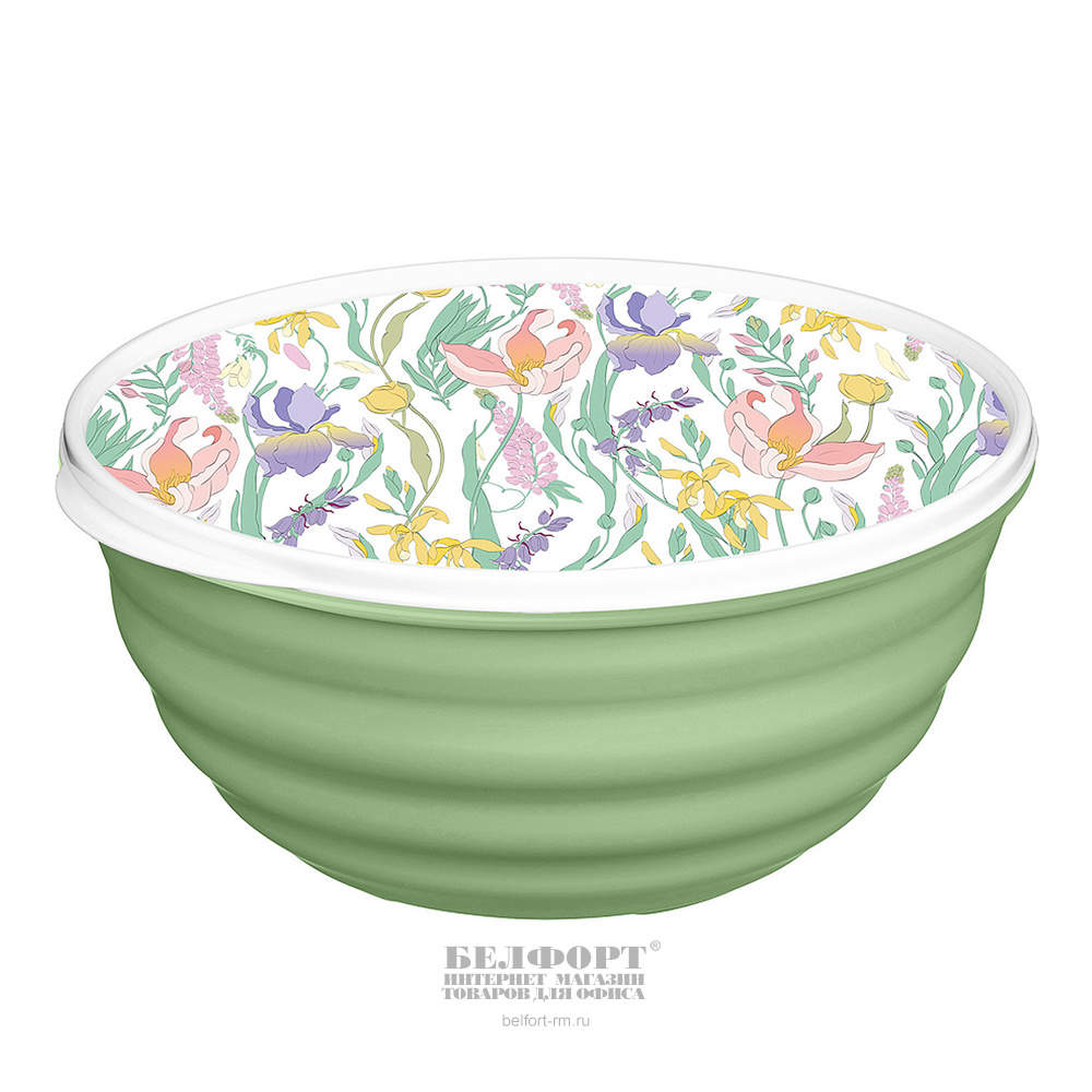 Салатник с крышкой 2,1л, пластик, зеленый, Ботаника, "Latina"