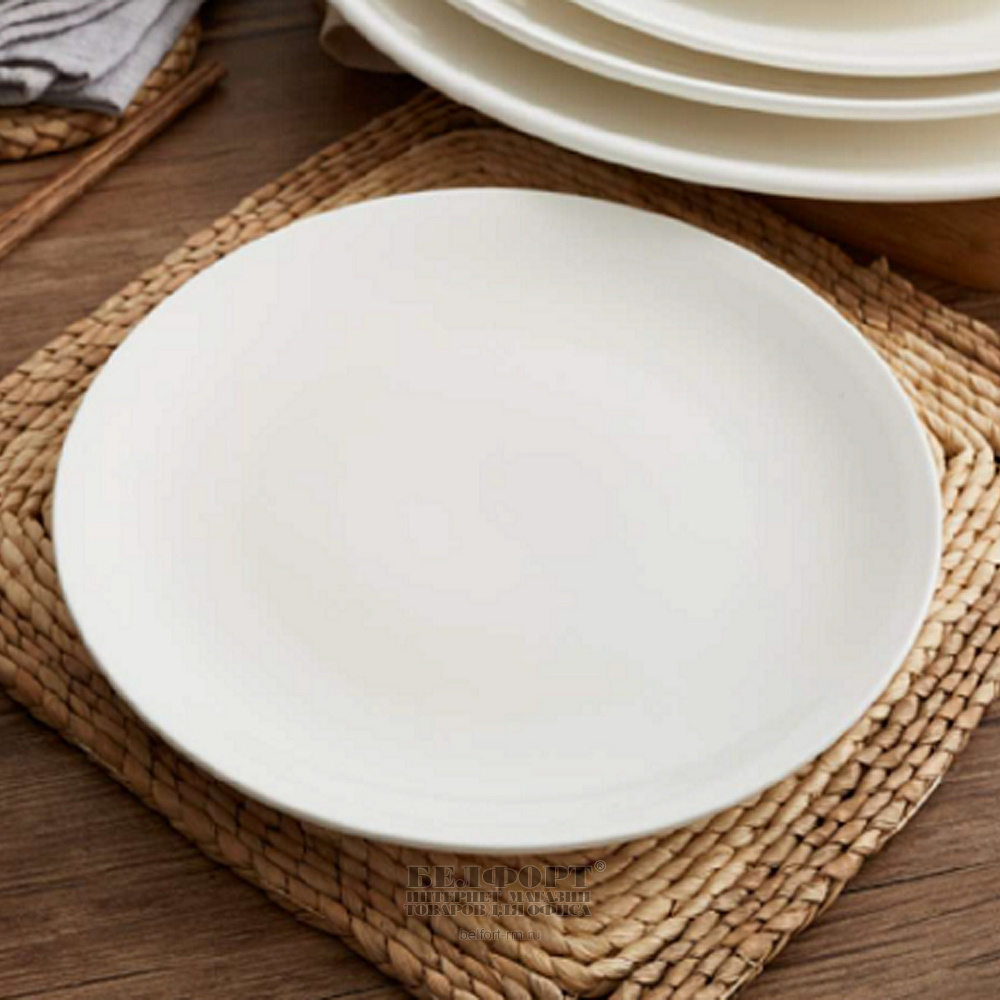 Тарелка мелкая диаметр 20 см, керамика, белая, углубленная