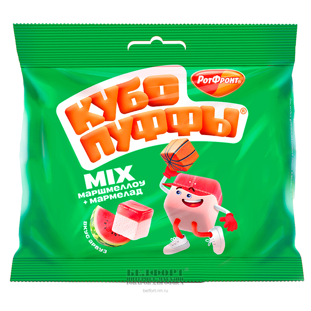 Конфеты РотФронт, "Кубопуффы", со вкусом арбуза, 90г, микс маршмеллоу и мармелада