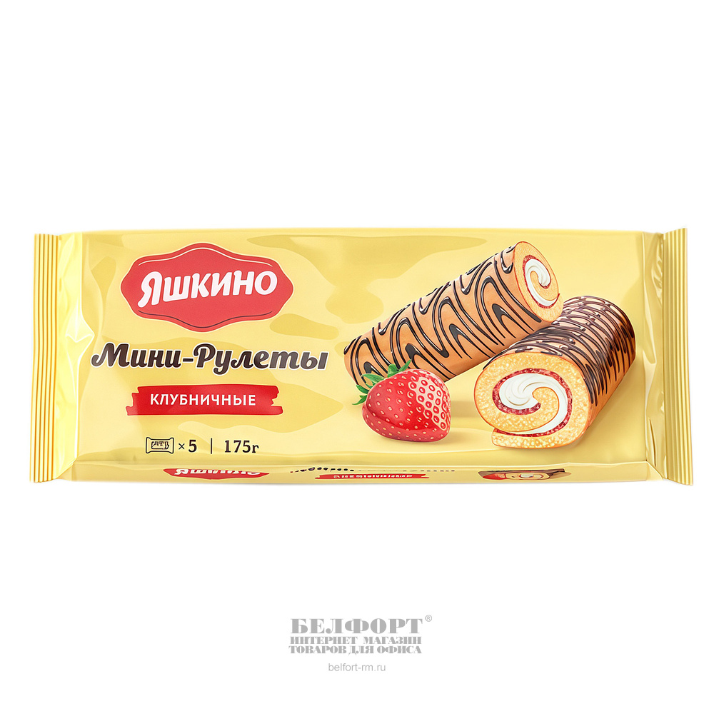 Мини-рулет бисквитный Яшкино, "Клубничный", 175г