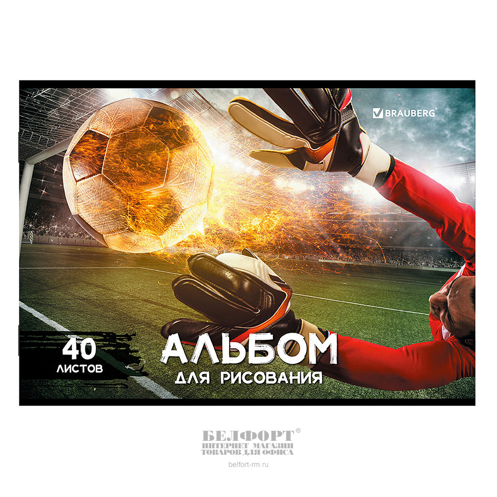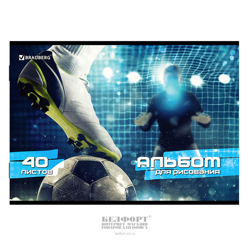 Альбом для рисования 40л, А4, Brauberg, "Футбол", на скрепке, 100г⁄м², 2 дизайна
