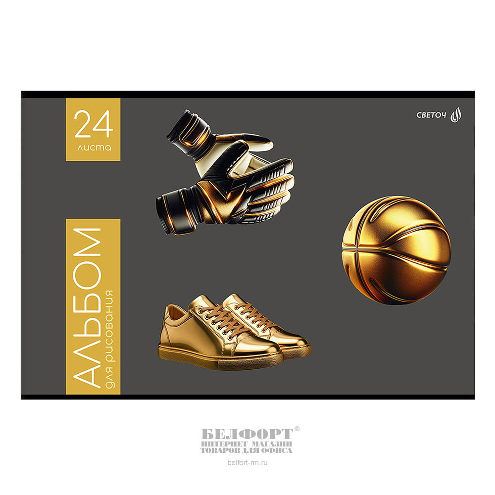 Альбом для рисования 24л, А4, Светоч, "Золотая победа", на скрепке, 100г⁄м²
