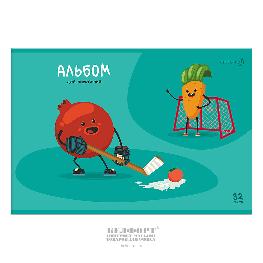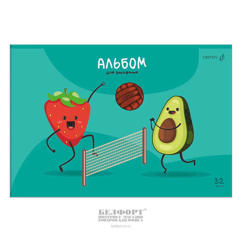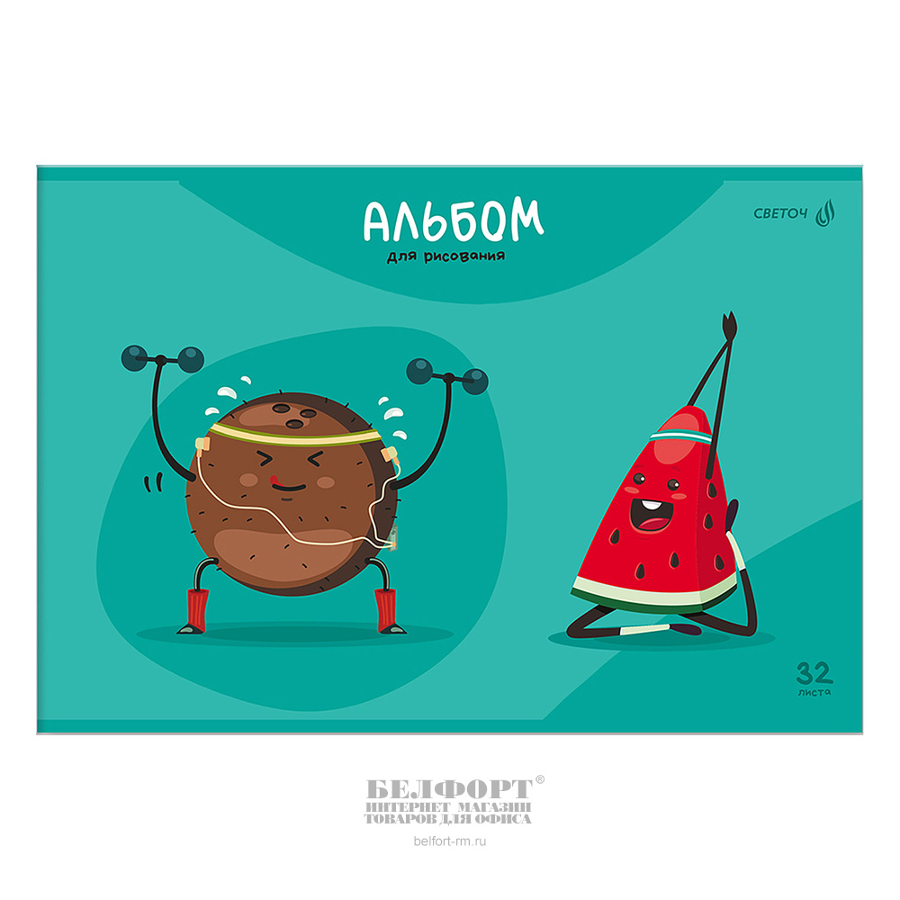 Альбом для рисования 32л, А4, Светоч, "Фруктовый фитнес", на скрепке, 100г⁄м²