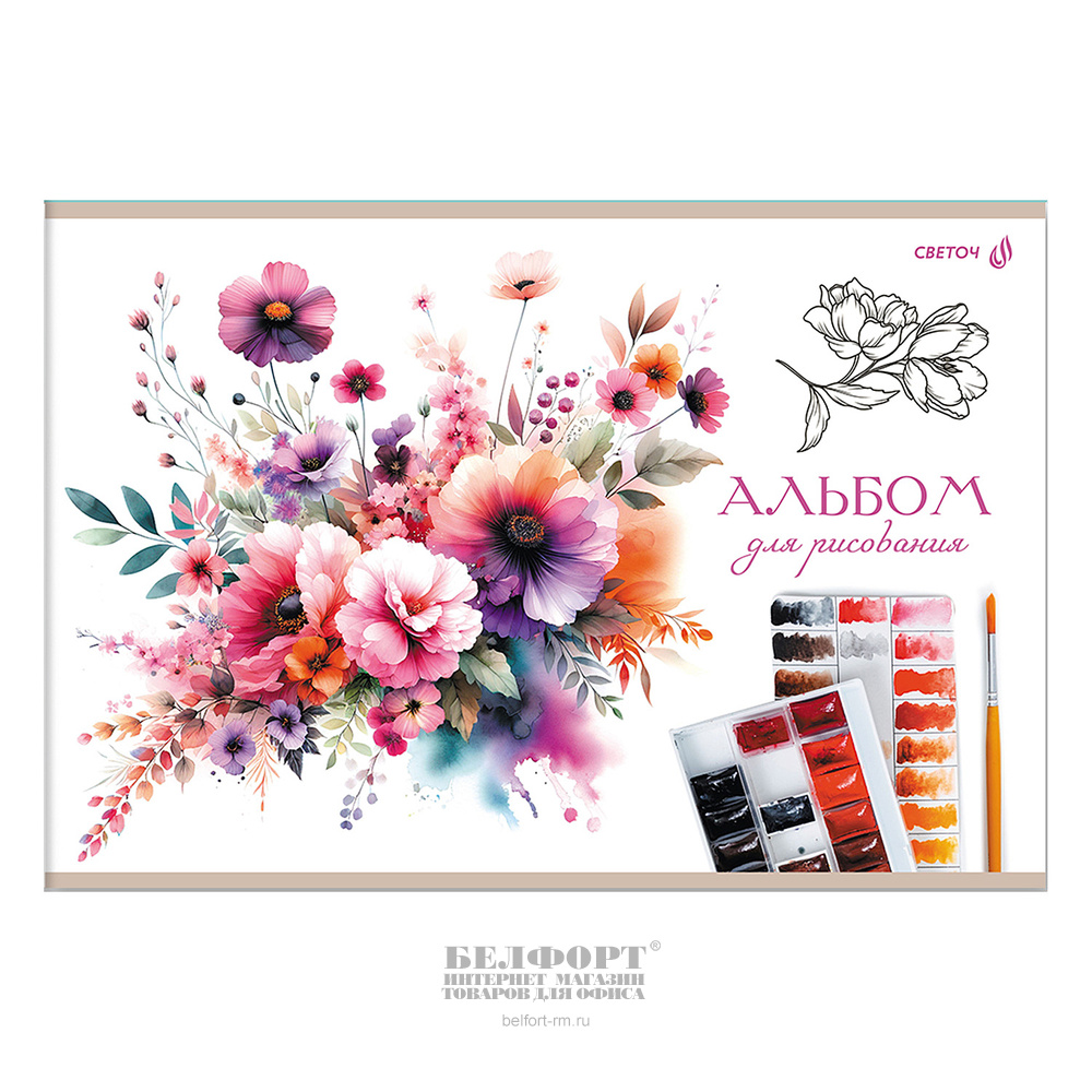 Добавить к сравнению258143Есть в наличии 22 шт.Альбом для рисования 32л, А4, Светоч, "Краски лета", на скрепке, 100г⁄м²