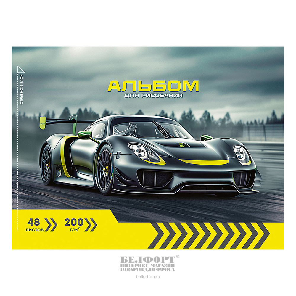Альбом для рисования 48л, А4, КБС, "Авто на фото", на скрепке, отрывной блок