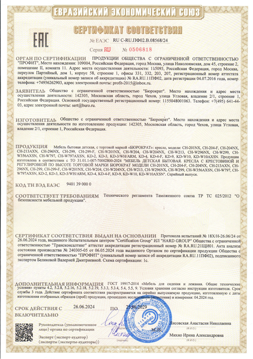 Регулировка высоты (газлифт) Материал обивки ткань