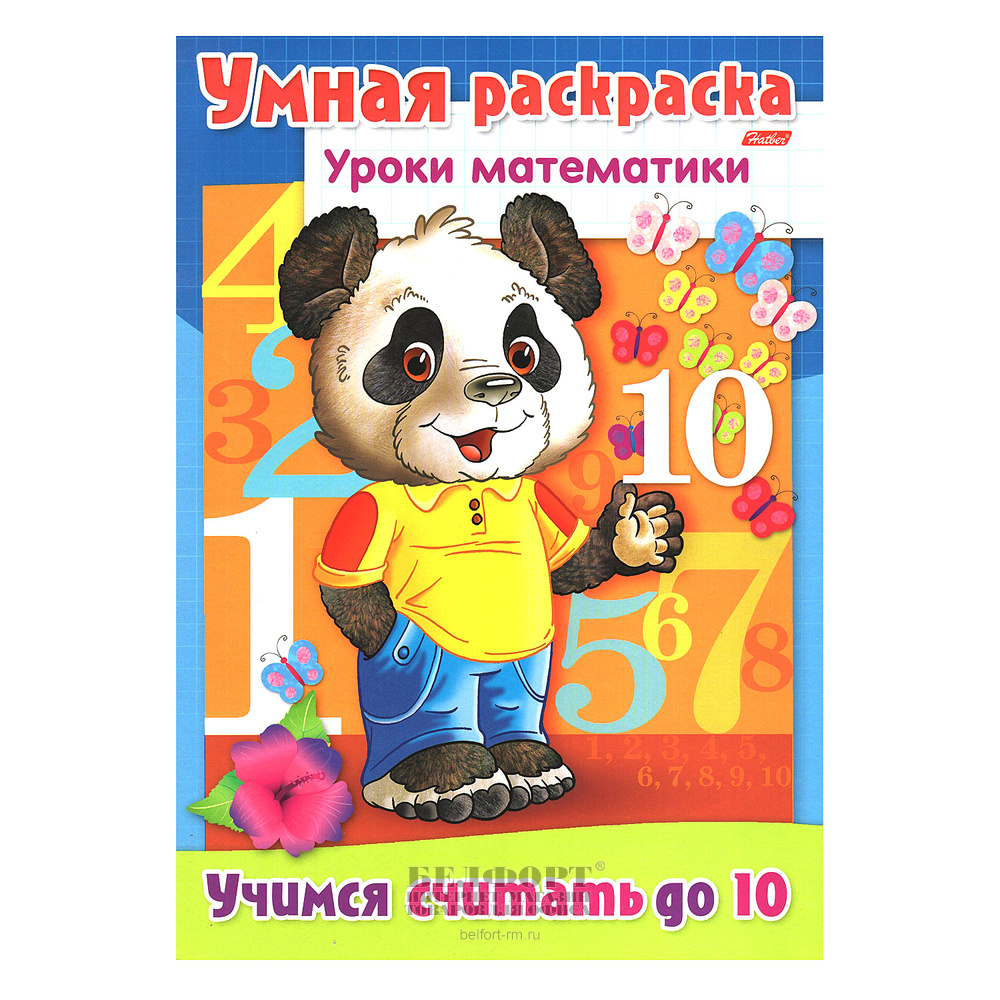 Книжка-раскраска А4, 8л, Hatber, "Уроки математики. Учимся считать до 10", на скобе