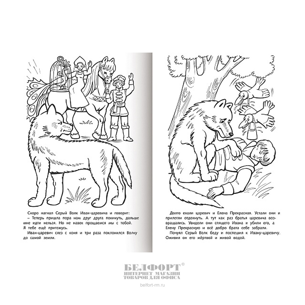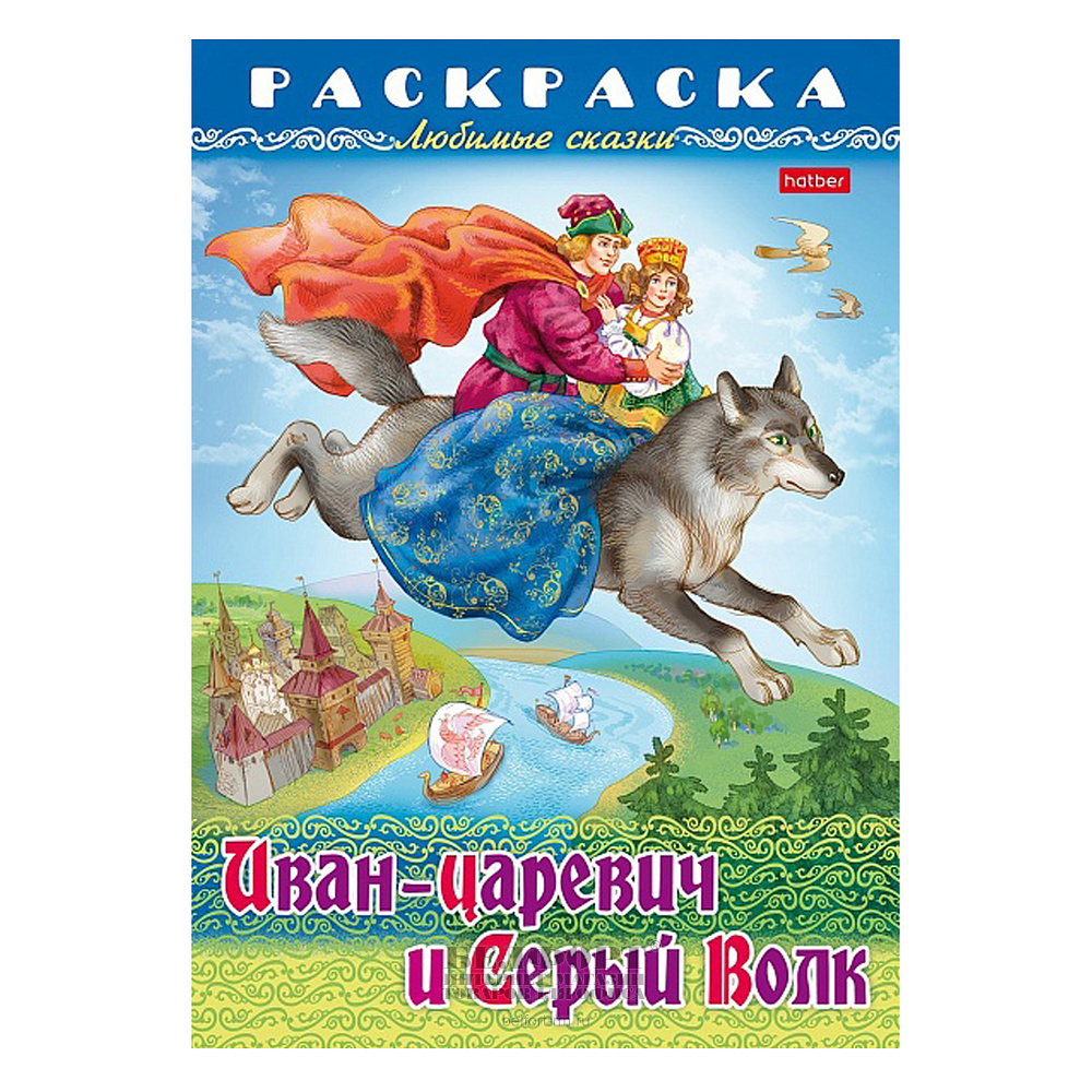 Книжка-раскраска А4, 8л, Hatber, "Любимые сказки. Иван-царевич и серый волк", на скобе