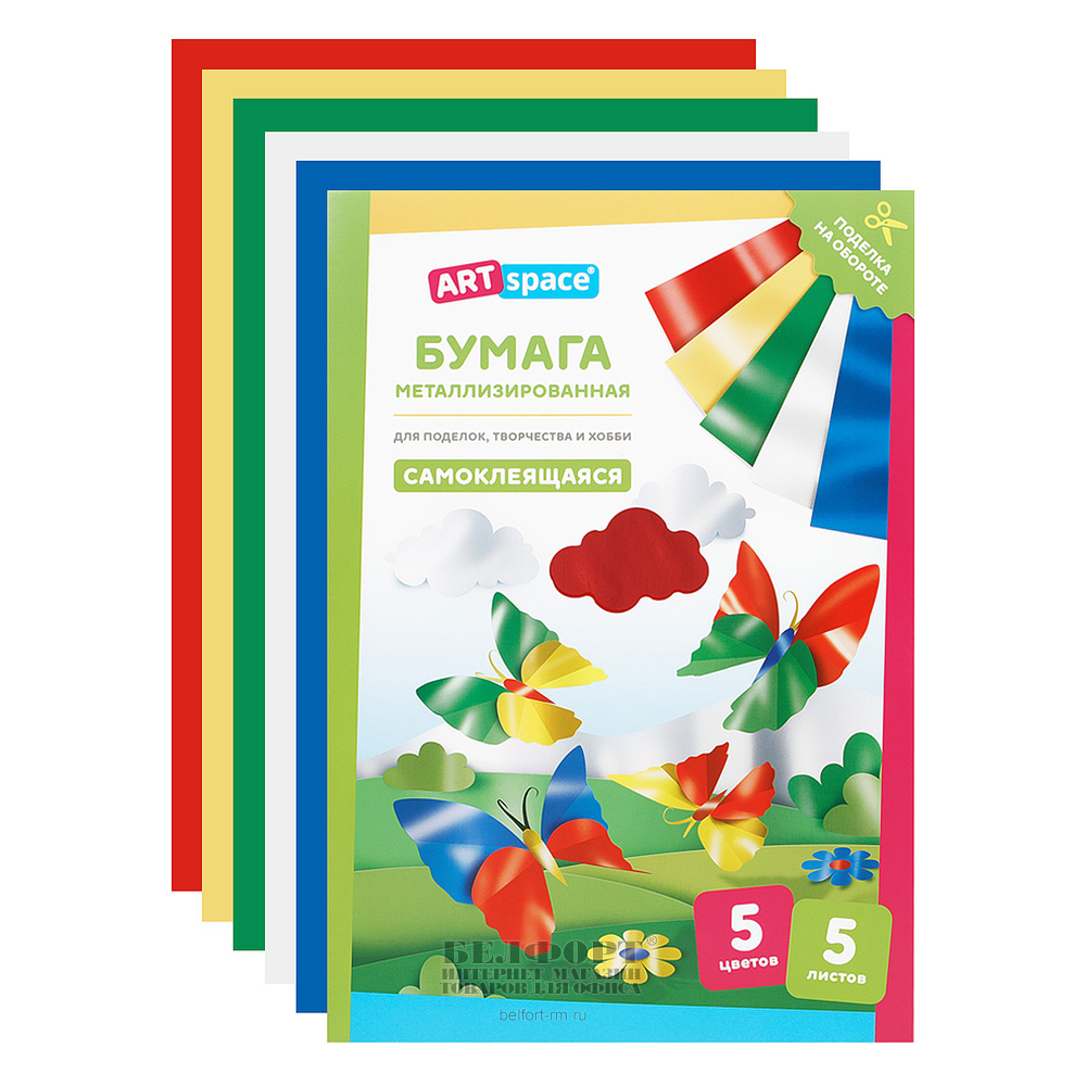 Цветная бумага самоклеящаяся, А4, 5л, 5цв, ArtSpace, в папке