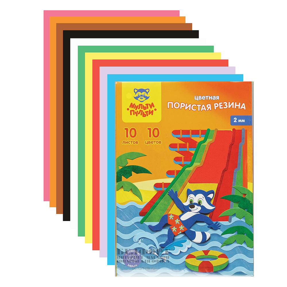 Фоамиран А4, 10л, 10цв, Мульти-Пульти, "Приключения Енота", толщина 2мм, в папке