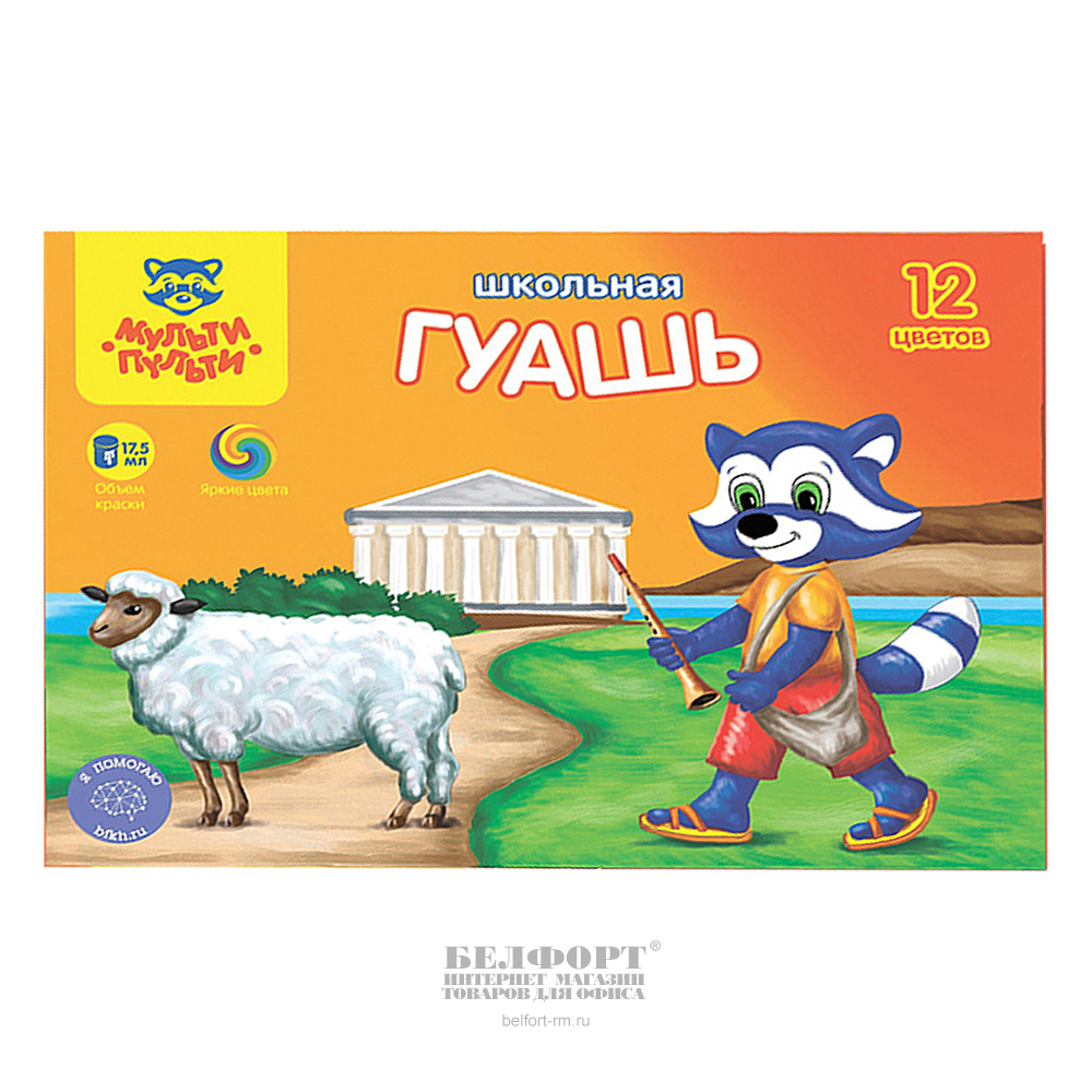 Гуашь 12цв, объем баночки 17,5мл, Мульти-Пульти, "Енот в Греции", картон. уп.