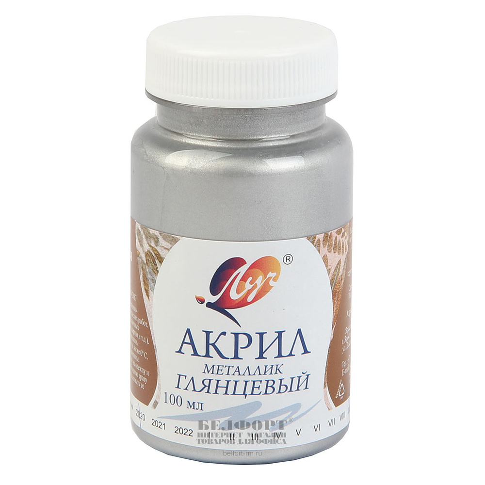 Краска акриловая, Луч, 100мл, серебристая, металлик, глянцевая