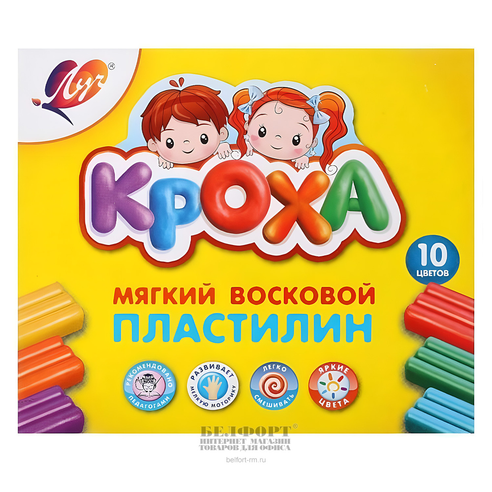 Пластилин мягкий 10цв, 150г, восковой, мягкий, Луч, "Кроха", со стеком, картон. уп.