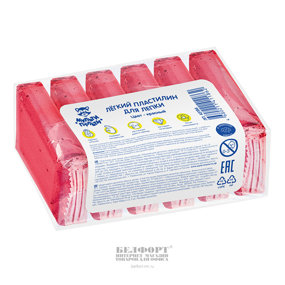 Пластилин легкий 6шт, 60г, Мульти-Пульти, красный, в пакете