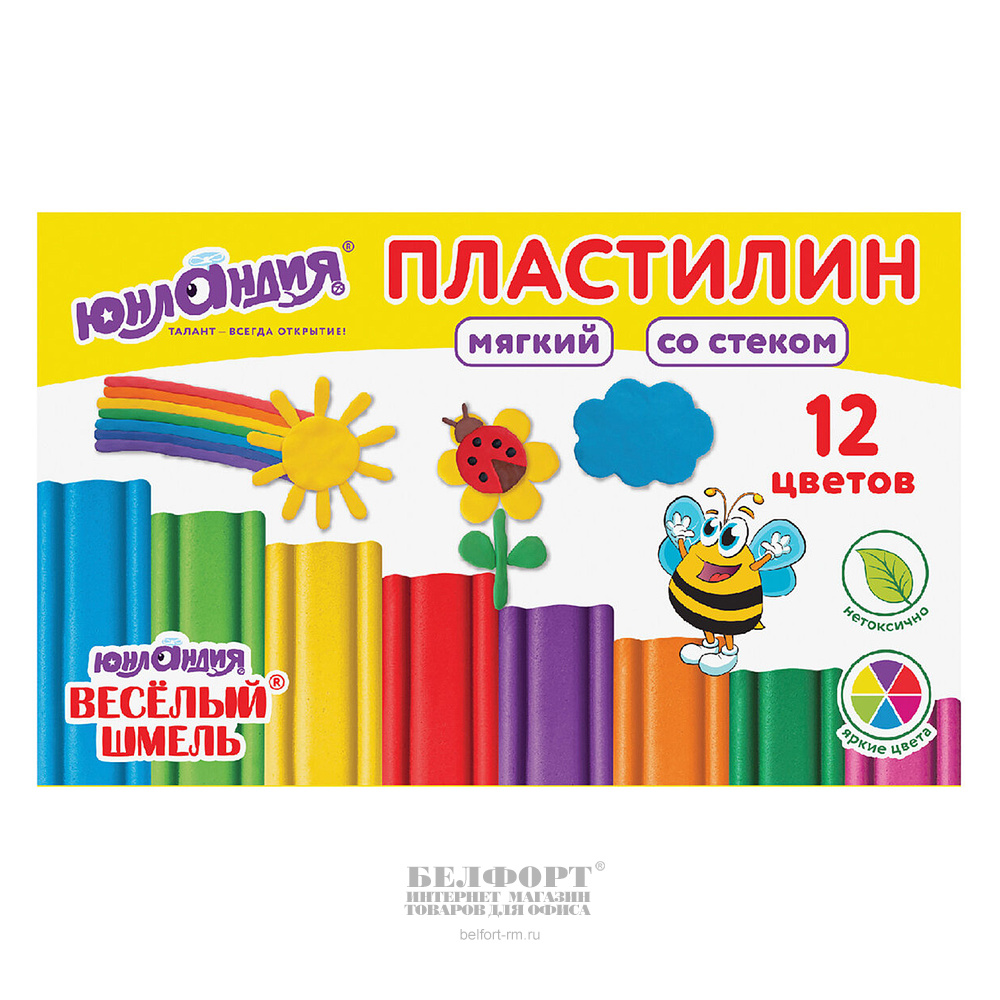 Пластилин мягкий 12цв, 180г, восковой, Юнландия, "Веселый шмель", со стеком