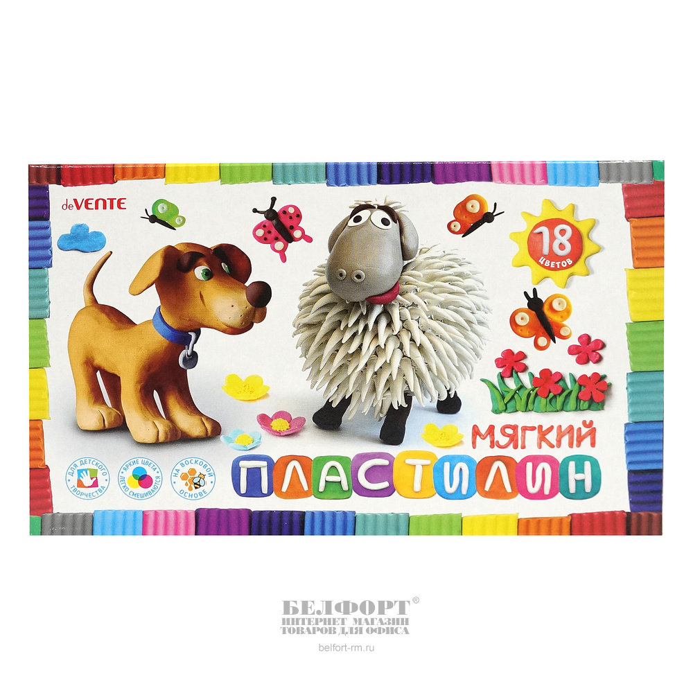Пластилин мягкий 18цв, 270г, восковой, deVENTE, со стеком, картон. уп. Фотографии на сайте могут иметь незначительные расхождения с фактическим внешним видом и комплектностью поставляемого товара