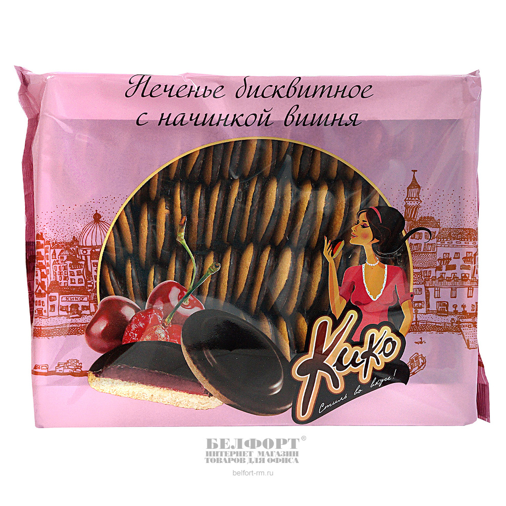Печенье бисквитное Кико, "Вишня" глазированное кондитерской глазурью с начинкой, 1,2кг