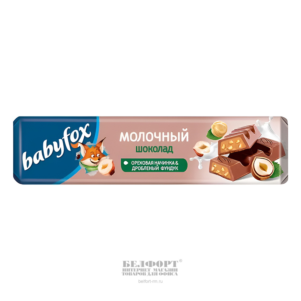 Шоколадный батончик Babyfox, молочный, с ореховой начинкой и дробленым фундуком, 45г