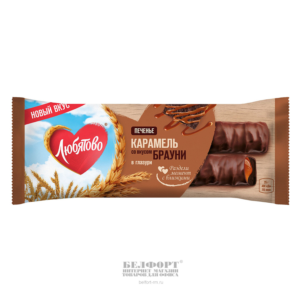 Печенье Любятово, с карамелью со вкусом брауни, с молочной глазурью, 50г