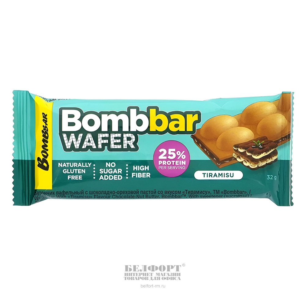 Батончик вафельный Bombbar, "Тирамису", с шоколадно-ореховой пастой, 32г