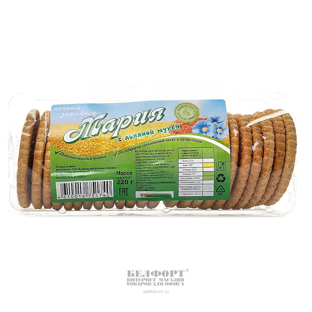 Печенье Кондитерская фабрика Покровск, "Мария", с льняной мукой, 220г