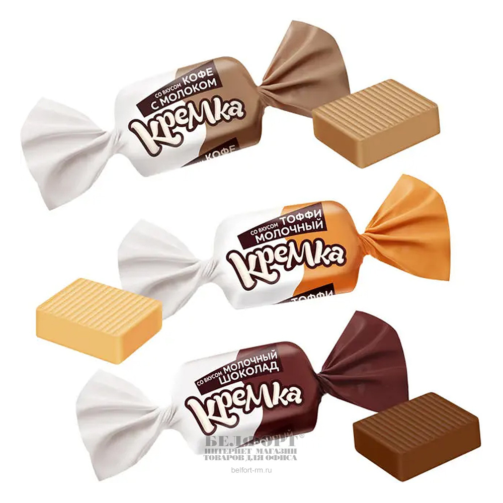 Конфеты КДВ, "Кремка", ассорти (молочный шоколад, кофе с молоком, тоффи), 1кг