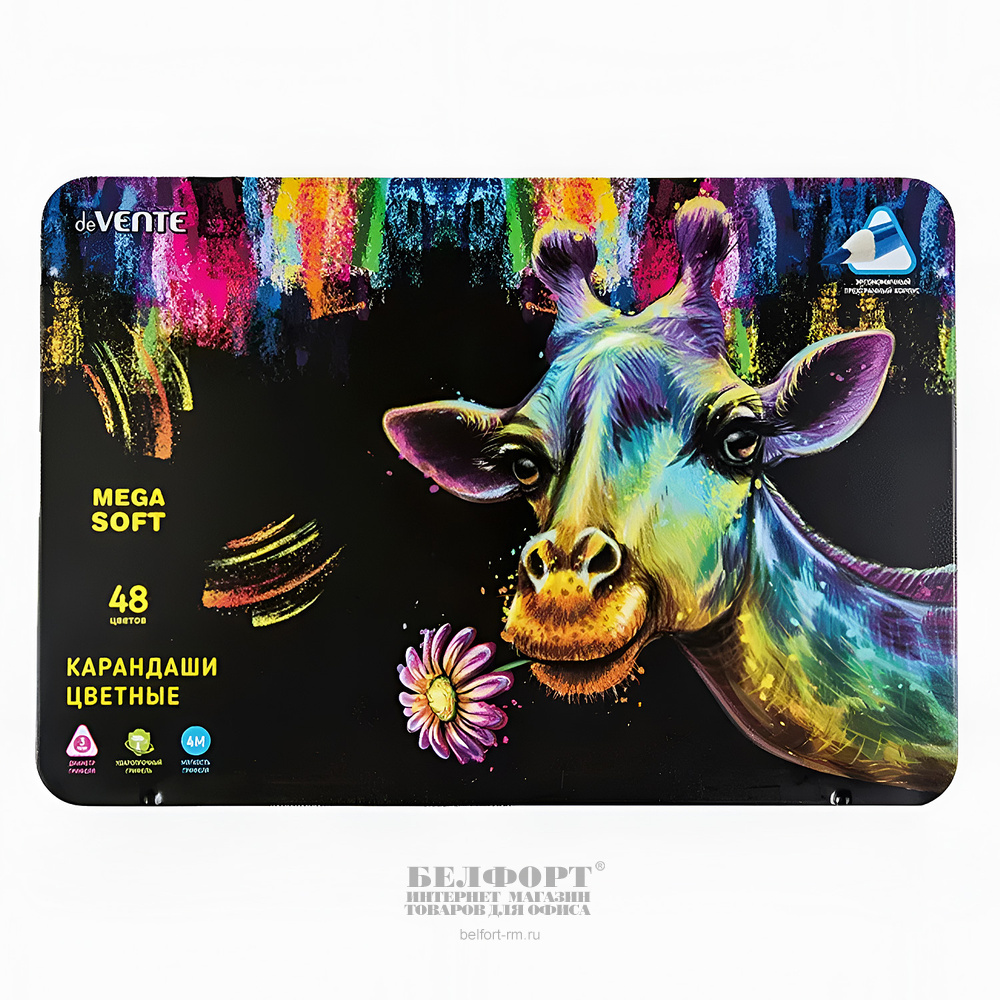 Цветные карандаши 48цв, deVENTE, "Triolino Ultra 4М", без ластика, трехгранный, диаметр грифеля 3мм, 4B(4М), в металлической коробке