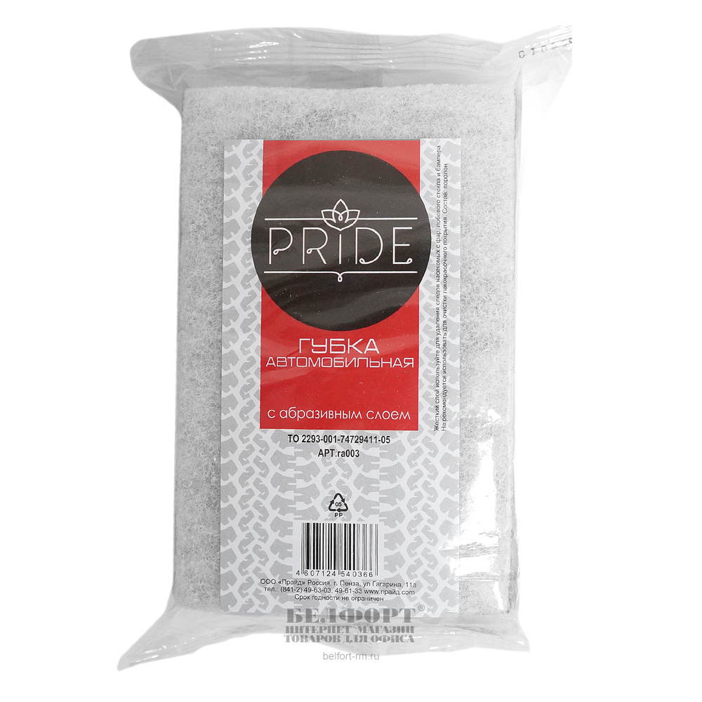 Губка для авто Pride, в пакете, серая, поролон, абразив, 16см*10см*5,5см