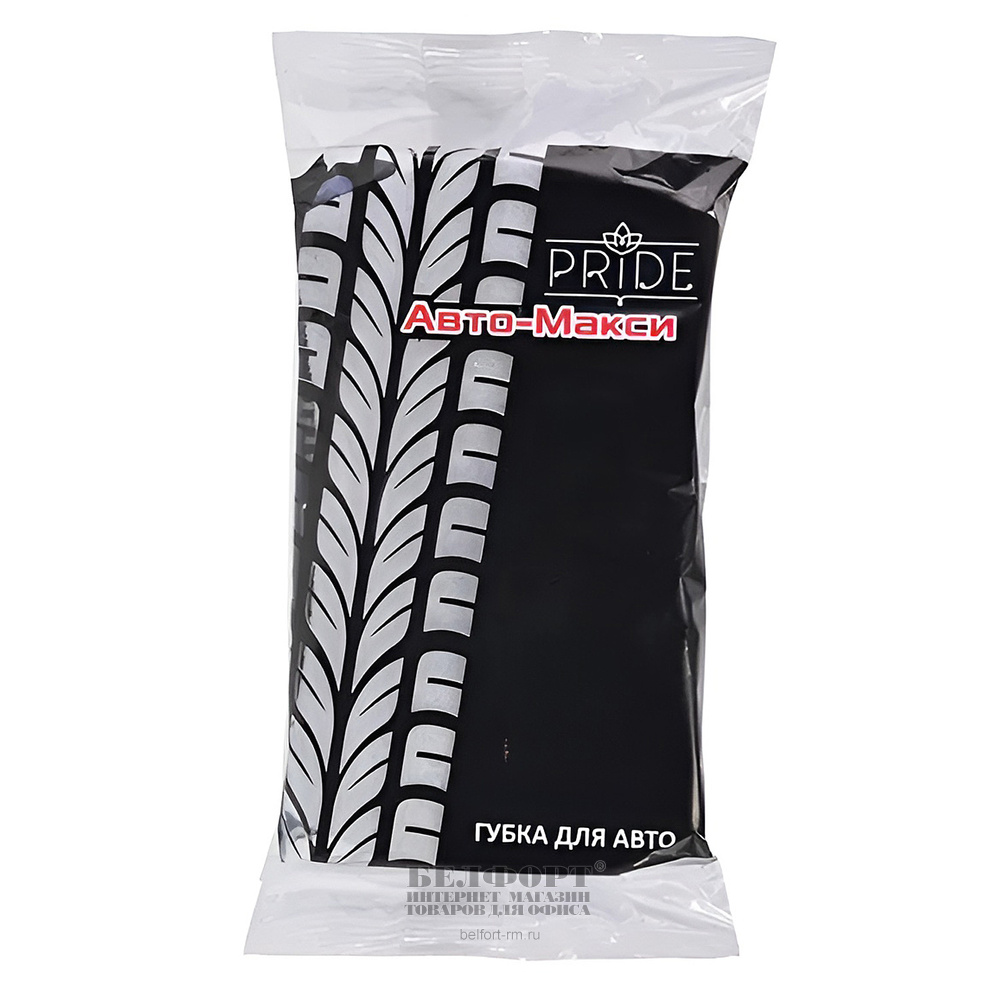 Губка для авто Pride, "Авто-Макси", в пакете, серая, пенополиуритан, абразив, 19,5см*12см*7см