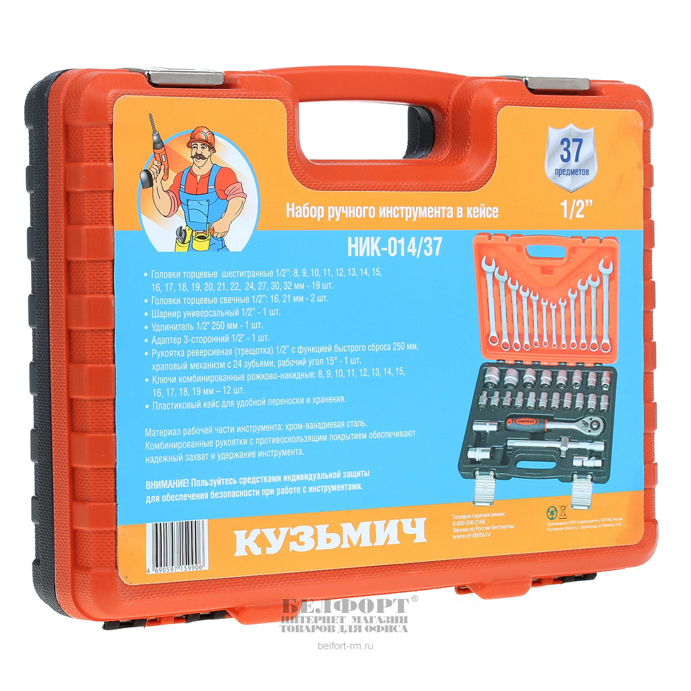 Набор инструментов 37 предметов, Кузмич, пластик. кейс Фотографии на сайте могут иметь незначительные расхождения с фактическим внешним видом и комплектностью поставляемого товара