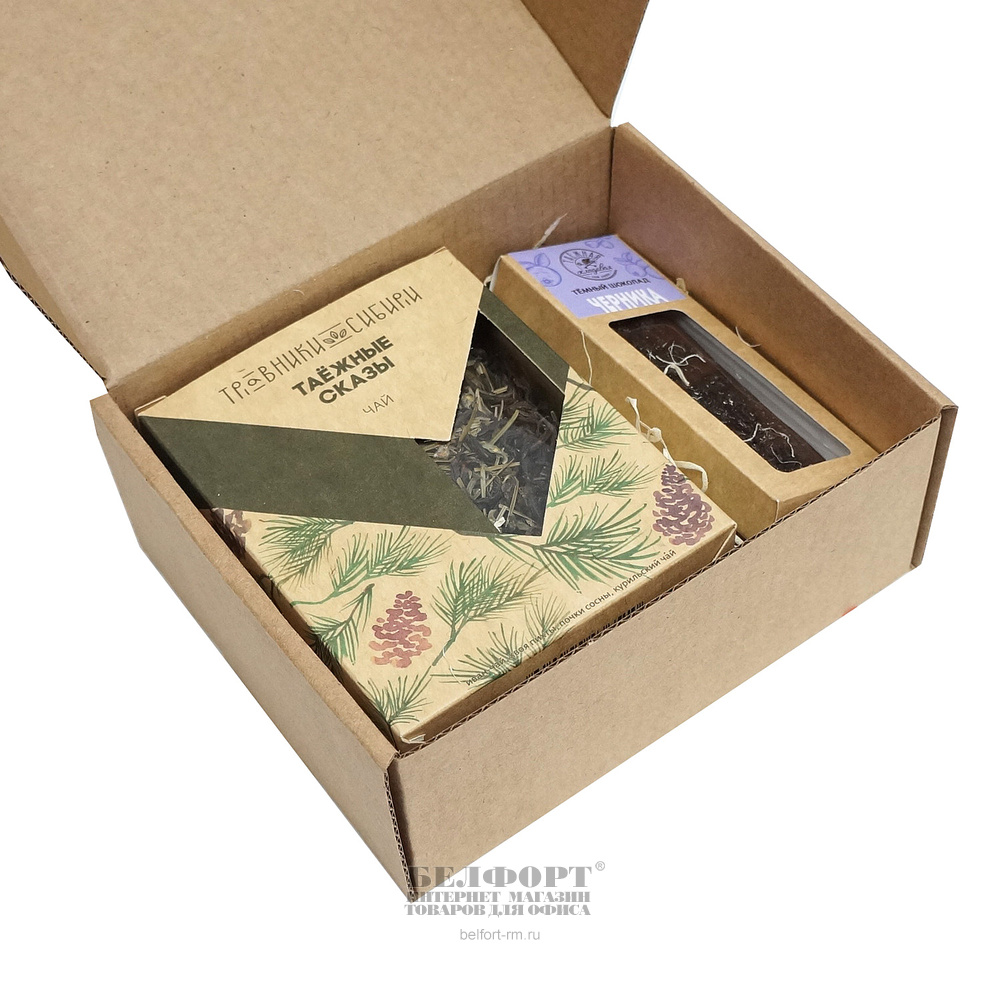 Подарочный набор Травники Сибири, "23 Февраля", 2 предмета, чай Таежные сказы 50г, шоколад 20г, 50г