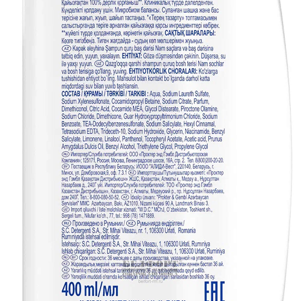 Шампунь Head&Shoulders, "Увлажнение и уход. Против перхоти", 400мл, универсальный