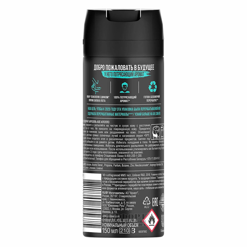 Дезодорант спрей, мужской, Акс, "Аполло", "Аромат кедра и мускатного шалфея", 150мл