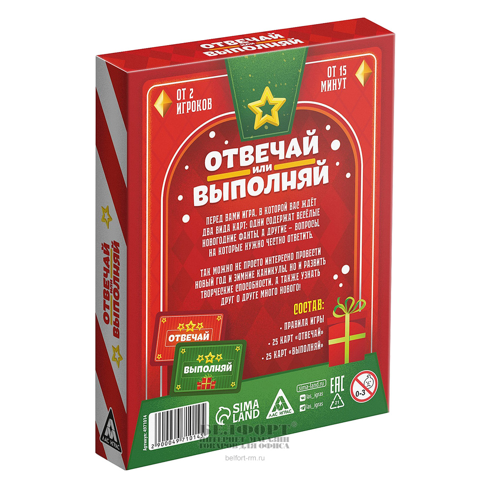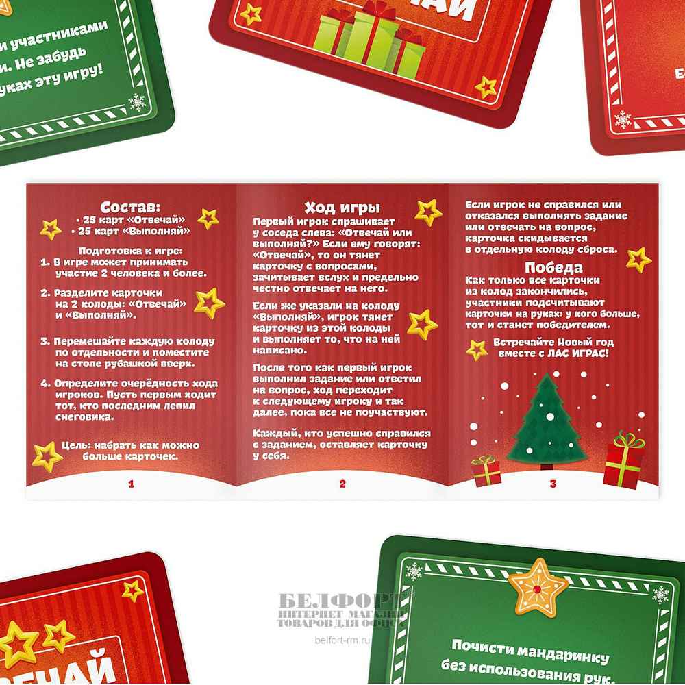 Карточная игра ЛасИграс, "Новый год: Отвечай или выполняй", 50 карточек