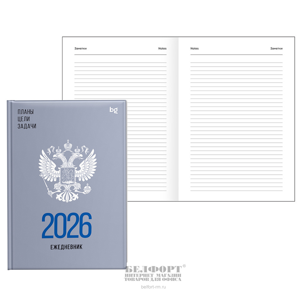Ежедневник 2026г. А5, картон ламинированный, BG, "Орел", 176л, 205мм*145мм, в твердом переплете, цветной, белый блок, глянц. лам.