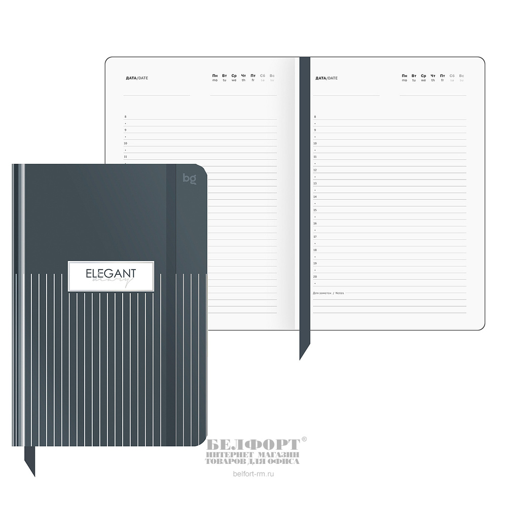 Ежедневник недат. А5, кожзам, Berlingo, "Elegance", 136л, 213мм*155мм, интегральный переплет, черный, кремовый блок, ляссе, 80г⁄м², глубокое тиснение