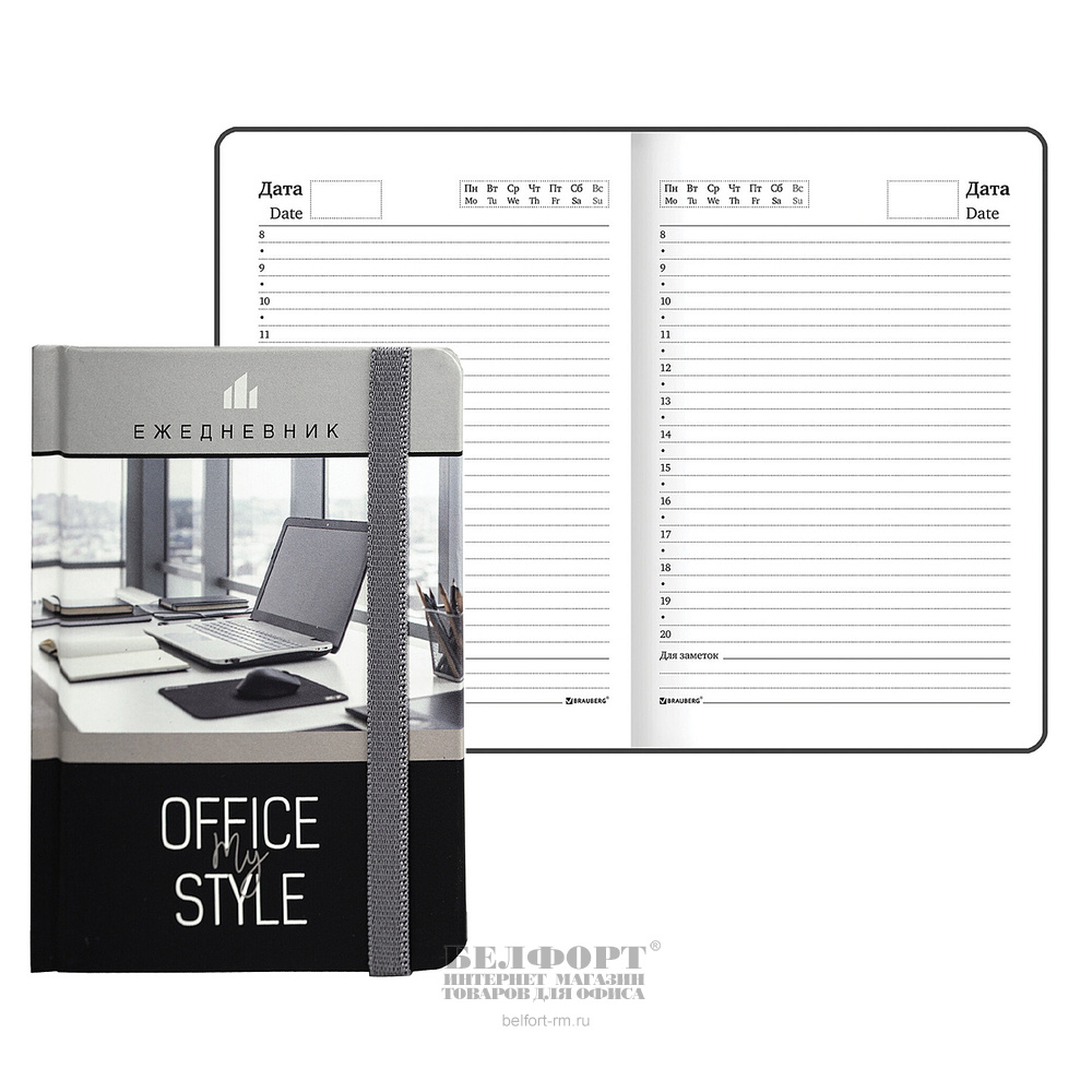 Ежедневник недат. А6, картон ламинированный, Brauberg, "Офисный", 128л, в твердом переплете, цветной, белый блок, матовая ламинация, с резинкой
