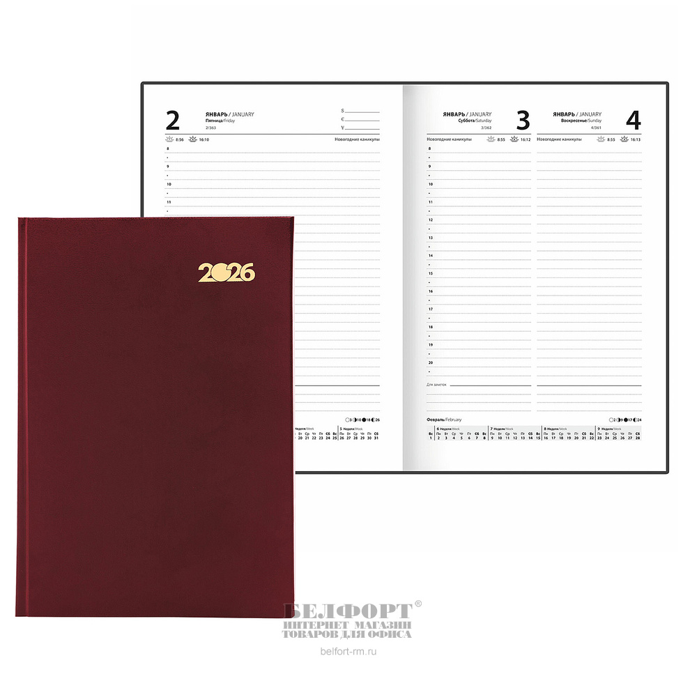 Добавить к сравнению259384Нужно больше? Свяжитесь с менеджером отдела продажЕжедневник 2026г. А5, кожзам, Brauberg, "Imperial", 168л, 213мм*138мм, в твердом переплете, бордовый, кремовый блок, ляссе, скругленные уголки