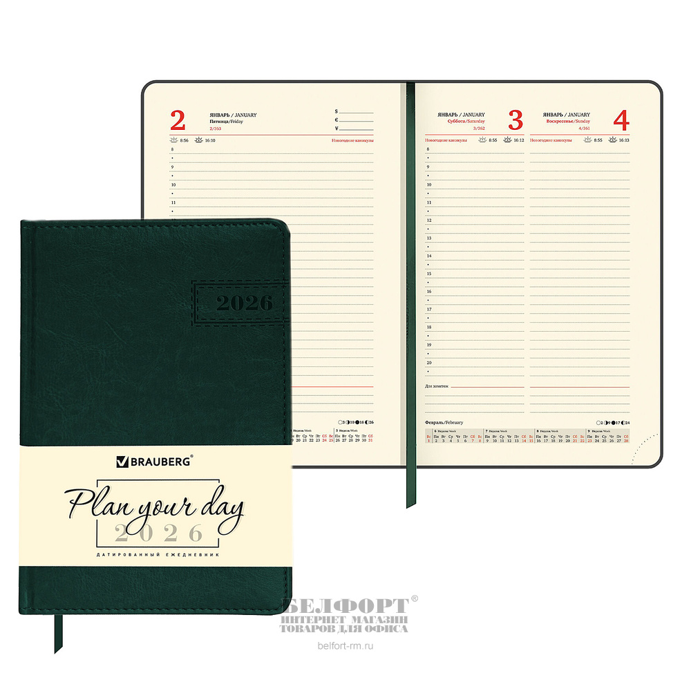 Ежедневник 2026г. А5, картон ламинированный, BG, "Флаг", 176л, 205мм*145мм, в твердом переплете, цветной, белый блок, глянц. лам.