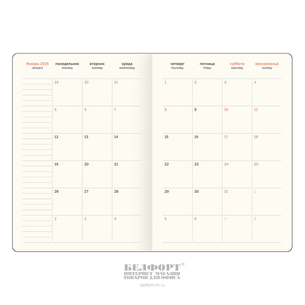 Добавить к сравнению259468Нужно больше? Свяжитесь с менеджером отдела продажЕжедневник 2026г. А5, бумвинил, BG, 168л, 206мм*135мм, в твердом переплете, коричневый, белый блок, 60г⁄м²
